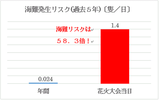 花火大会観覧の限られた活動中の衝突・乗揚げの海難発生率 :1.400隻/日