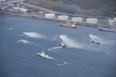 | 室蘭港はじめ管内沿岸海域において、大量の油等の流出事故が発生した場合、地元関係機関が連携を図り、被害を最小限に食い止めることを目的として昭和49年に、「室蘭地区排出油等災害対策協議会」を設立し、運用を図っています。 現在の会員数は38機関となっています。 |