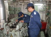 船舶の動力部であるエンジンの運転管理や整備、燃料油の管理などを担当します。そのほか、船内生活で必用な電気(発電機など)の管理 も行います。