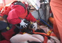 船舶の転覆や沈没などの海難事故に遭遇した者の船舶からの救出や、漂流者の救助などを担当します。潜水士は、巡視船艇乗組員の中から選抜され、厳しい潜水訓練を受けた後、全国の潜水指定船で業務に当たっています。