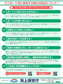「ミニボートに乗る前に知っておきたい安全知識と準備」(PDF)や関連動画などが掲載されていますので、ご覧ください。