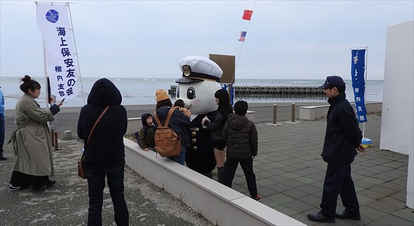 | また、機械室では、うみまるによる海難防止啓発活動も行い、ゴールデンウィークから活発化する北海道のマリンレジャーの事故の防止を訴えました。 | |