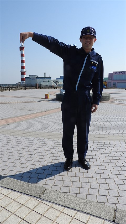 | さらに、灯台全景を撮影できる近くの公園で灯台を持ち上げるような写真が撮影できることを案内すると、スマートフォンで記念撮影する見学者も次々に現れました。 そのうち何件かはインスタグラムに投稿されるかもしれません。 少しでも多くの人に、航路標識や海上保安業務について興味を持っていただく機会になれば幸いです。 たくさんの皆様に御来台いただき、ありがとうございました。 |