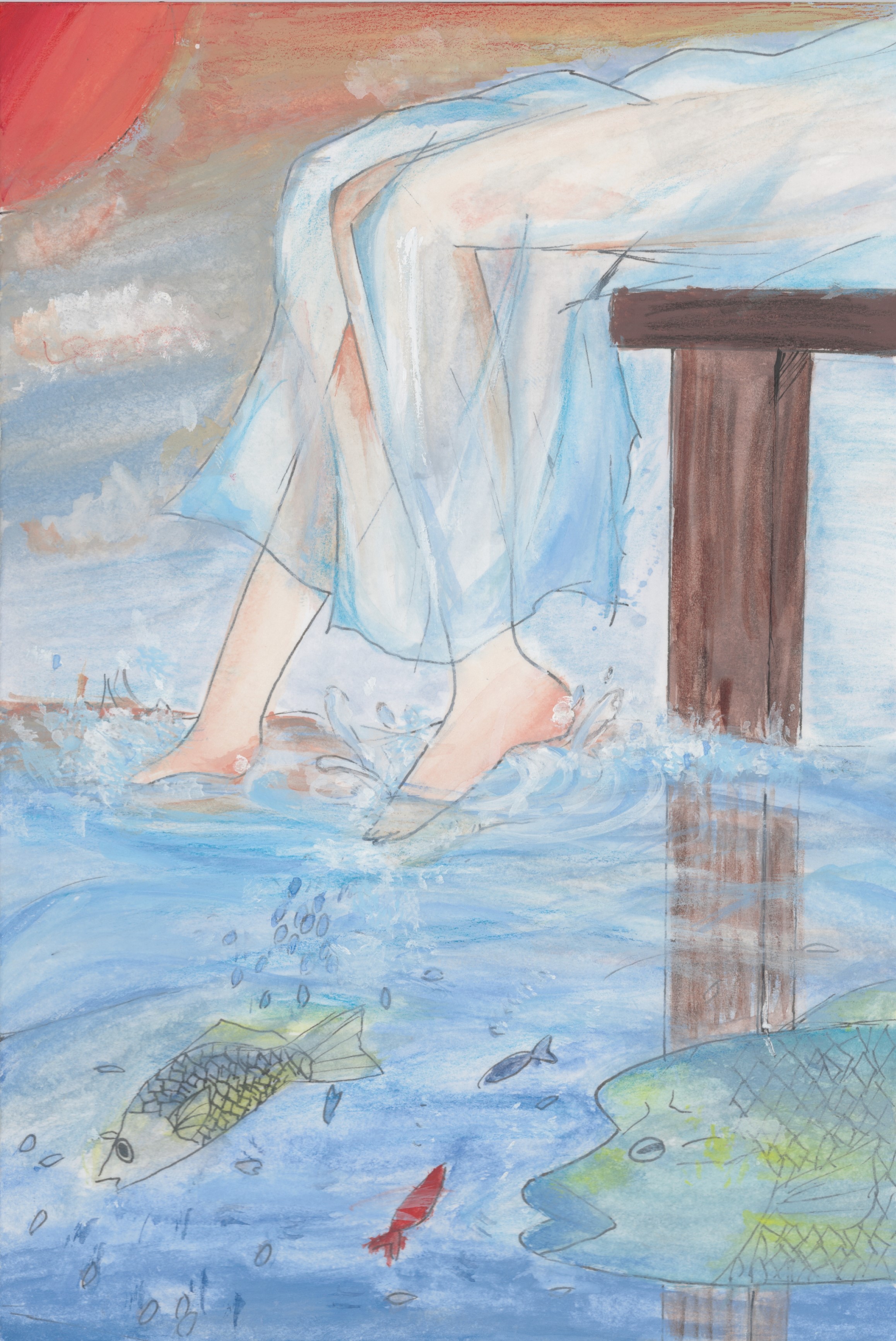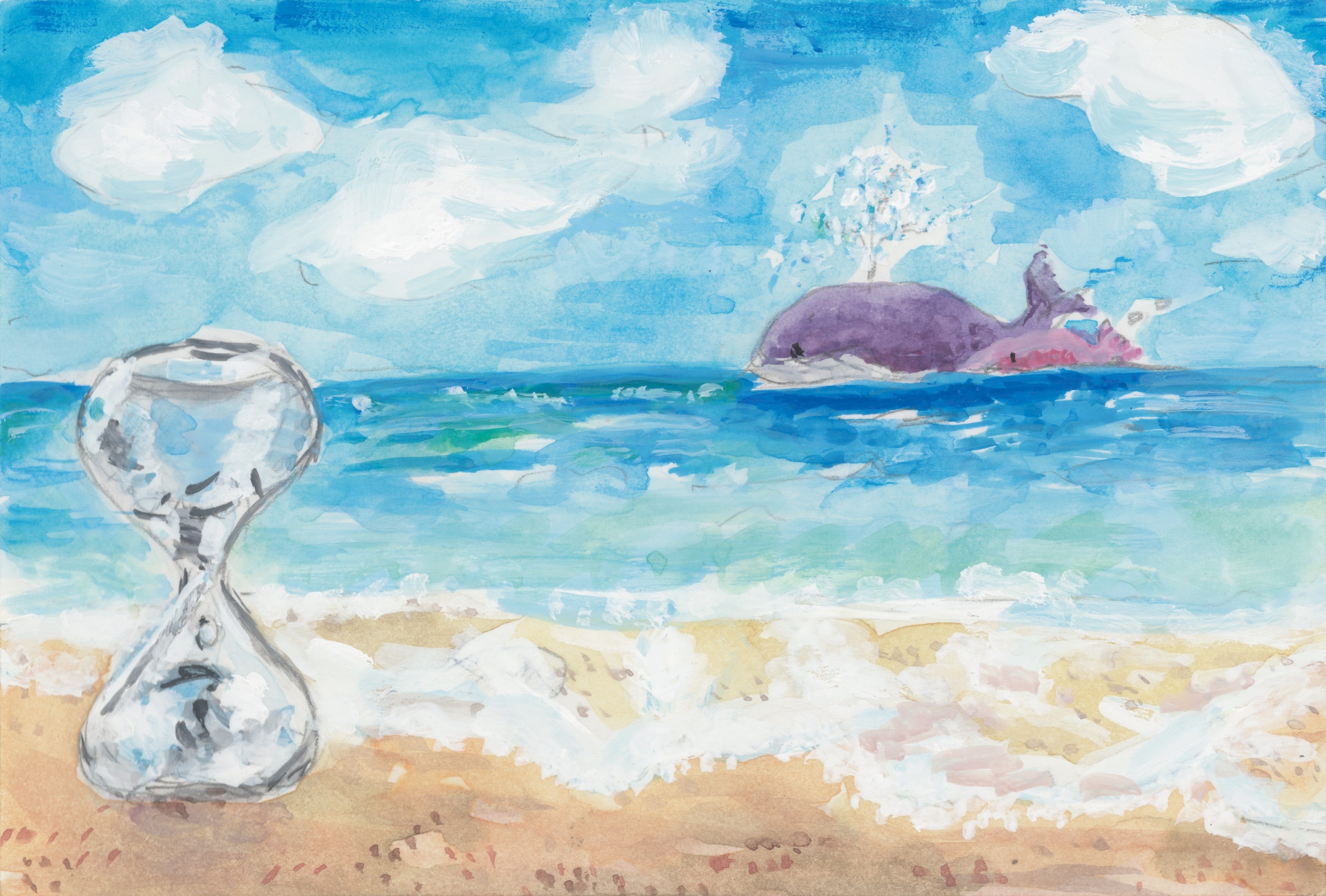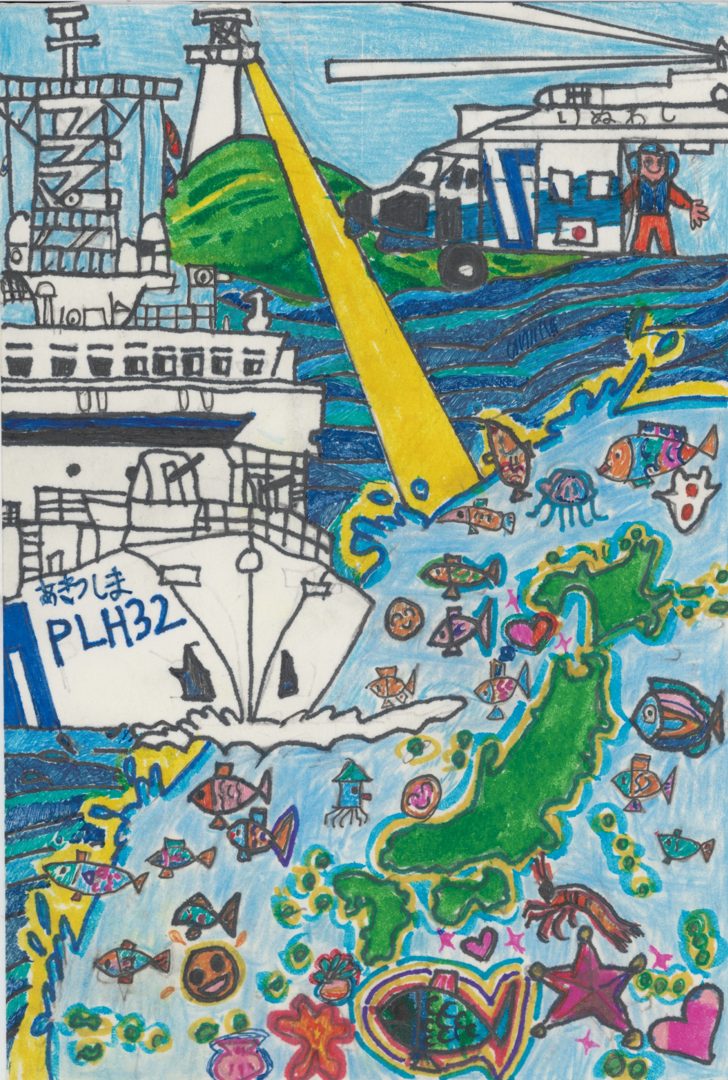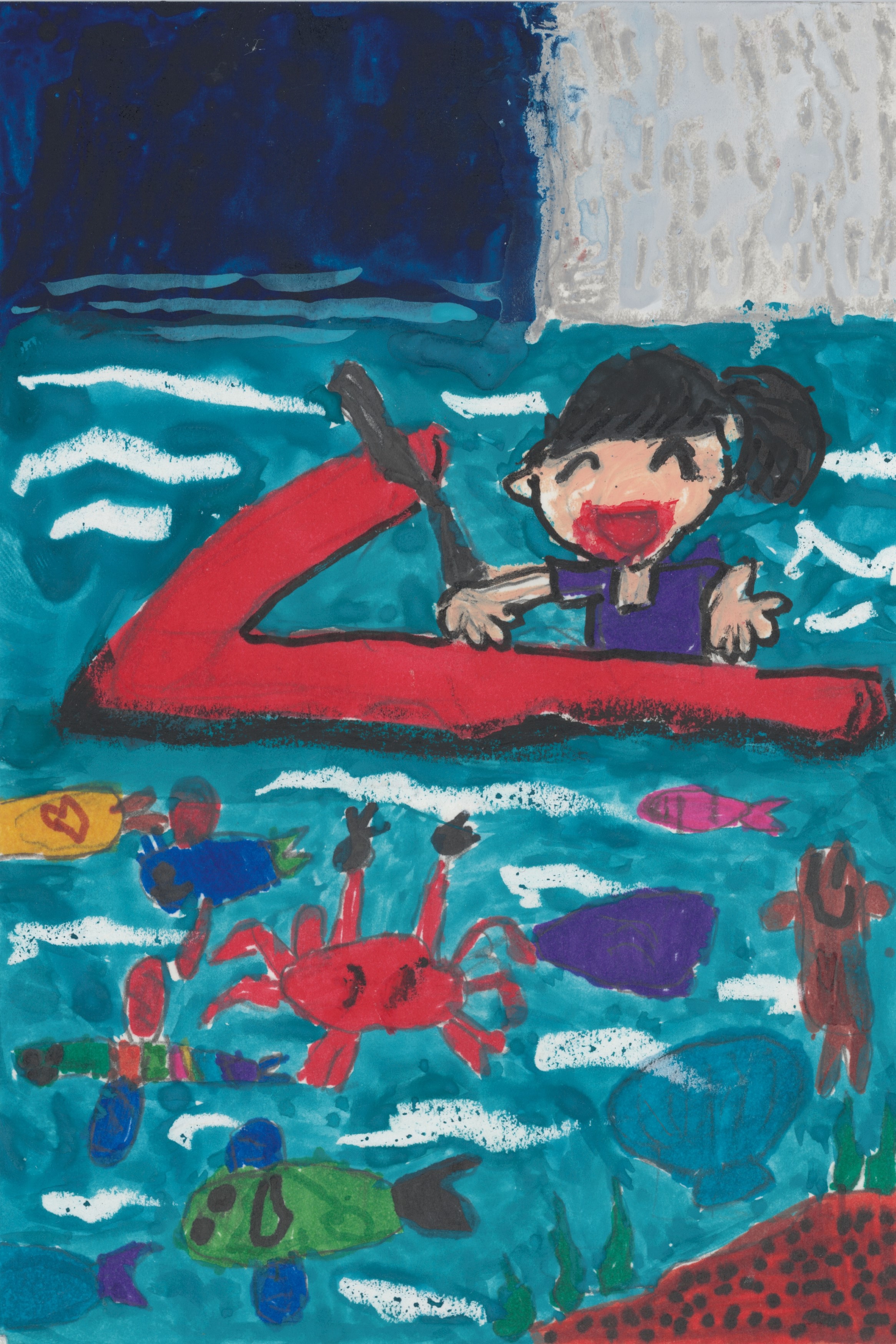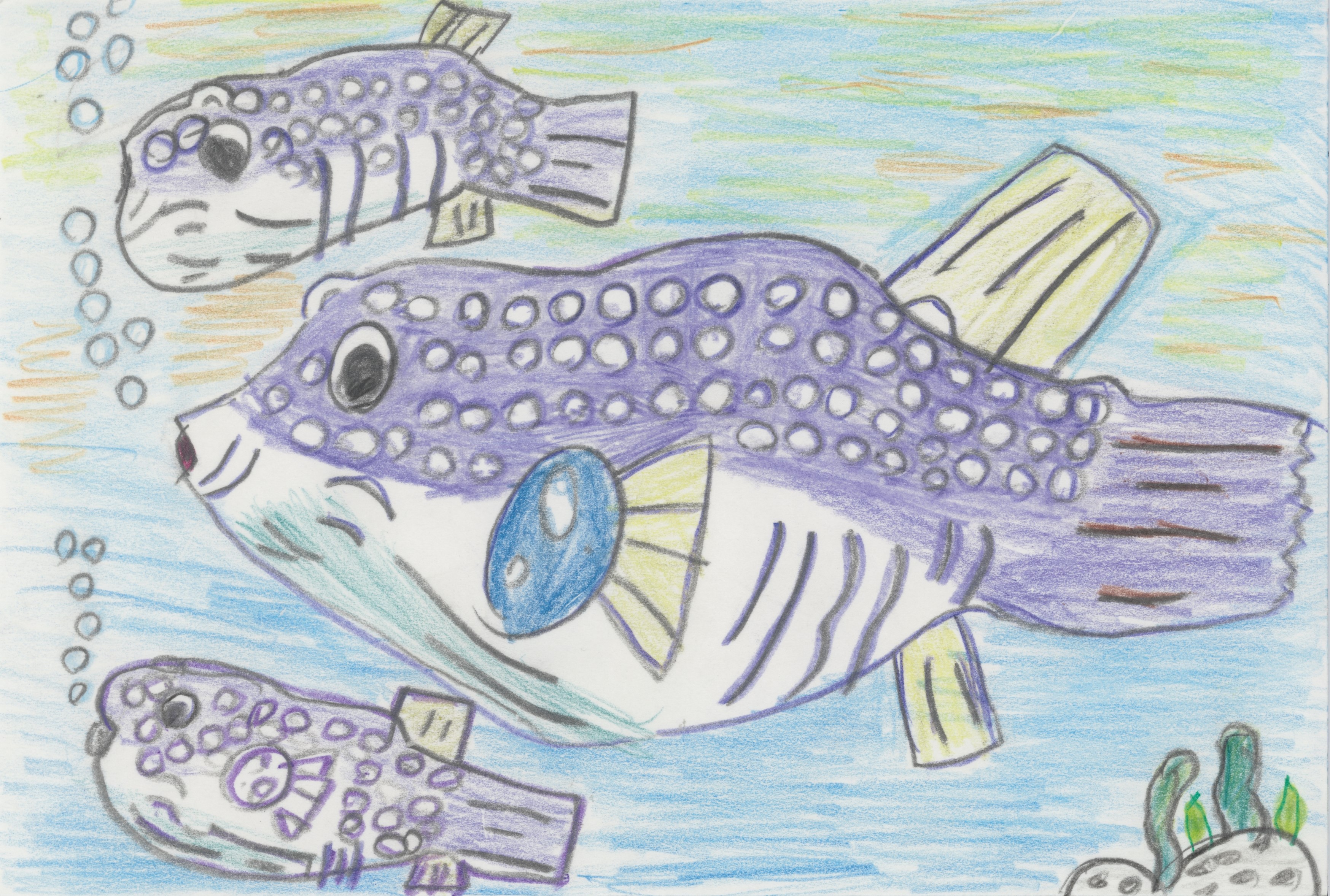 「画面一杯にテーマを描いています。シュノーケルで水中にいることを表現しています。」「きれいな海での海中散歩の楽しさが伝わってくるような作品です。」 |