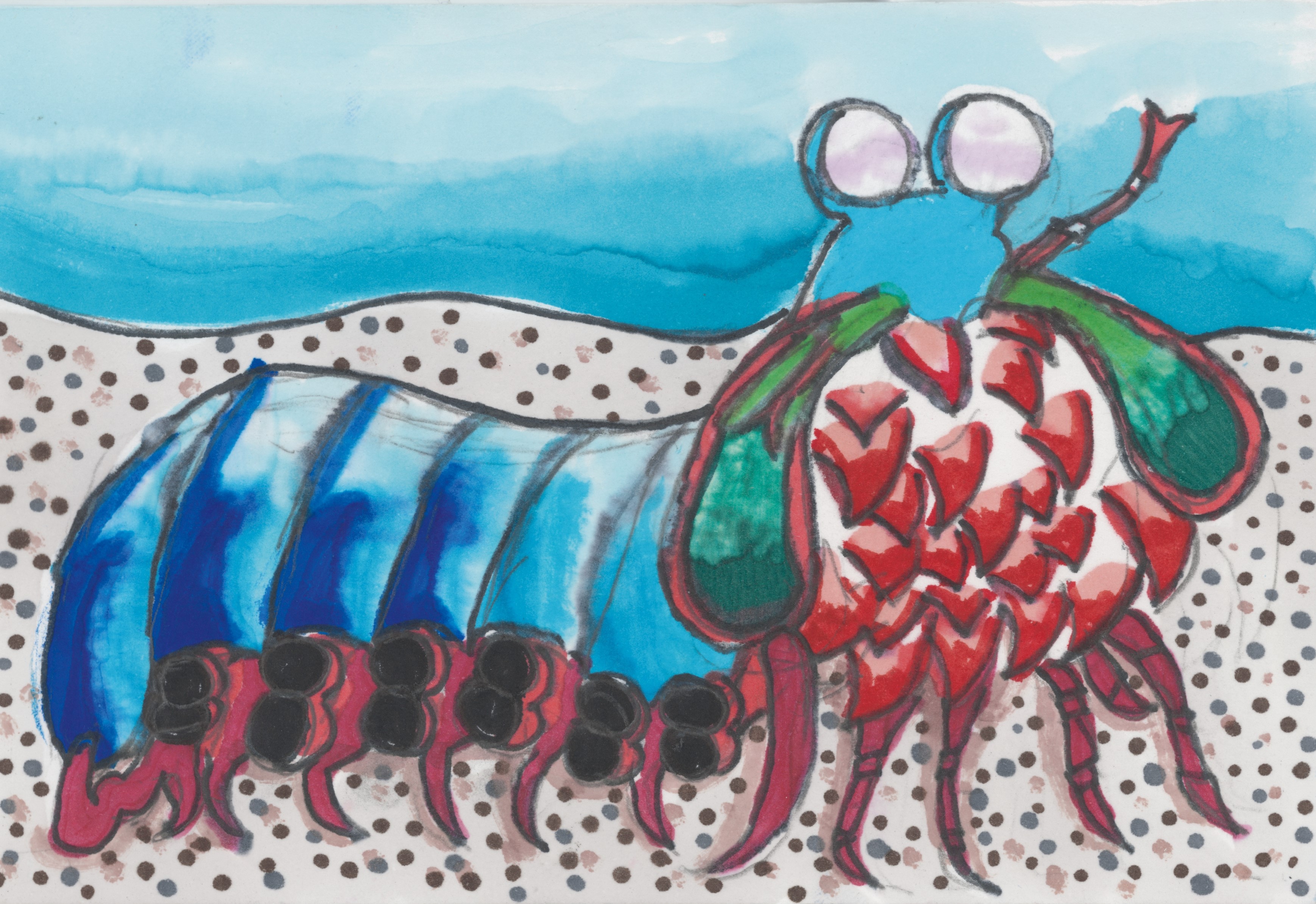 「クリオネと泡、蟹を上手く構成しています。泡のリズム感、蟹とのバランスが良いです。クリオネも精密に表現されています。」「全体の色彩が美しく海の青と蟹の赤の配色、泡の透明感も上手に描かれた作品です。」 |