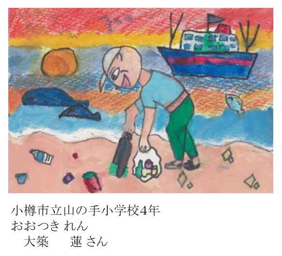 これからの未来のためにも、魚やくじら、青い海は大切です。なので、自分のできること=海のそうじをできる人をふやすことにする。 ●特別審査員コメント 海でゴミ拾いをすると「何でこんなにゴミがあるんだ!」と顔が険しくなってしまいがちですが、この絵の人物は「海をきれいにできている」喜びにあふれた笑顔です。浜辺も輝いています。 |