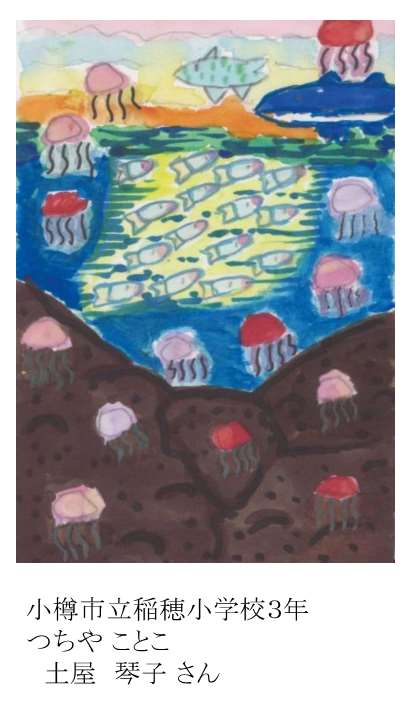 ●本人コメント きれいな海できれいなクラゲがずっと泳いでいてほしいと思ってかきました。 ●特別審査員コメント 海の中で光るクラゲは水の透明度によって輝きを増すように思えます。作者の願いが多くの人に伝わって欲しいものです。 |