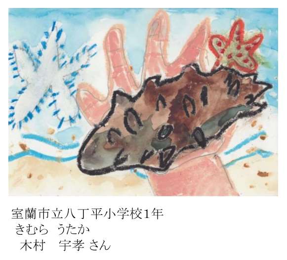 海でヒトデとナマコにさわりたい。 ●特別審査員コメント 「ヒトデやナマコ」大人には奇妙な形や色の変な生き物ですが、子どもの目には宝物のように見えている。そのフワフワ感にあふれた作品です。 |