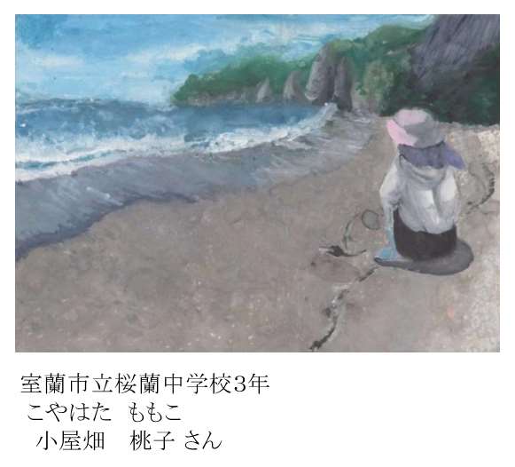 ●本人コメント 思わず見とれてしまう透き通った海を描きました。人々が何十年先も青い海を美しいと思う未来があればいいなと思います。 ●特別審査員コメント くるぶしまでつかった海の水は透明で、たくさんの泡も含んでいるので優しい色に満ちています。画面の大部分を占める水面からは、遥か上空の空さえとりこんで、海の大きさが垣間見える作品です。 |