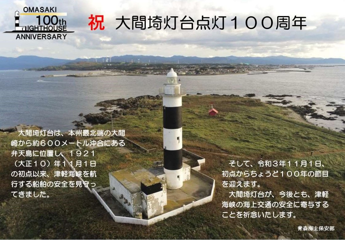 大間埼灯台が点灯100周年の節目を迎えることを記念し、令和3年10月14日(木)、『オリジナル フレーム切手「大間埼灯台点灯100周年」』が発売されました。
