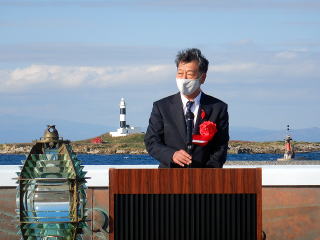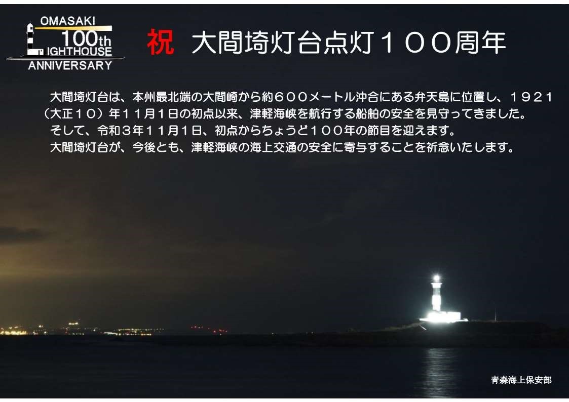 青森海上保安部では、令和3年に初点灯(大正10年11月1日)から100周年を迎える『大間埼灯台』の100周年記念プレイベントとして、令和2年11月1日(日)日没から午後10時頃までの間、ライトアップイベントを行いました。