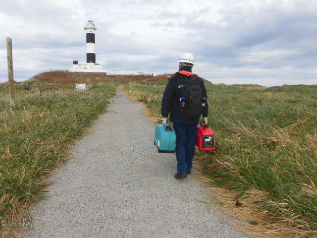 灯台までの舗装路を資機材を持って黙々と歩きます。
