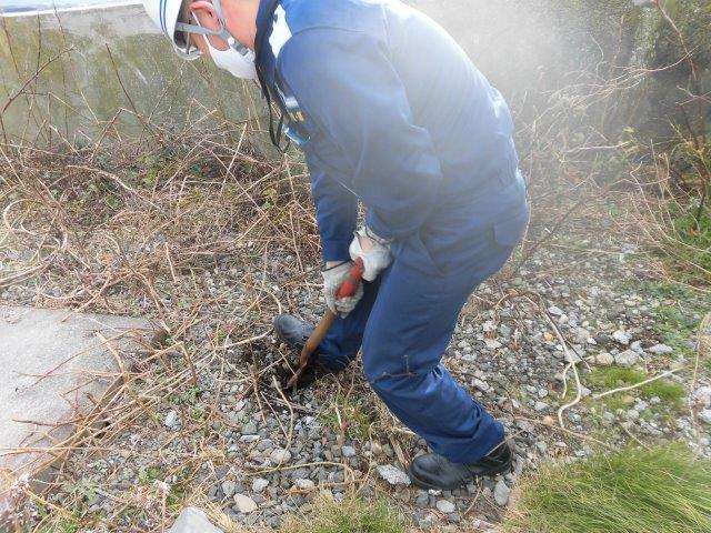 今夜の主役「投光器」を固定するための土嚢作りでした。