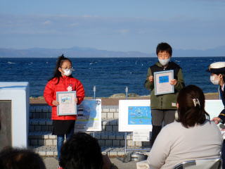 大間小学校3年 正根杏珠さん 大間小学校5年 吉田泰良さん