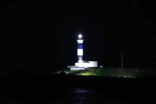 大成功! 真っ暗な海にぽっかりと浮かび上がる「大間埼灯台」。