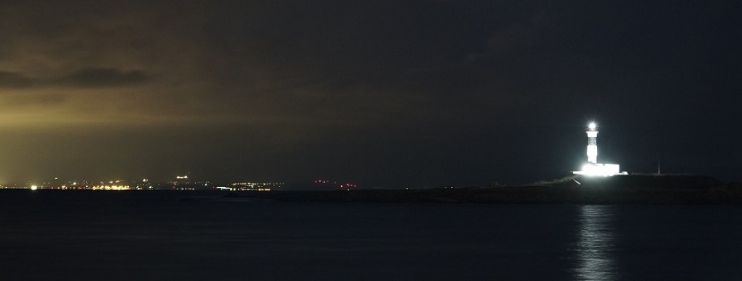 津軽海峡に浮かびあがる『大間埼灯台』 ~~~背景は函館市の街灯りです~~~