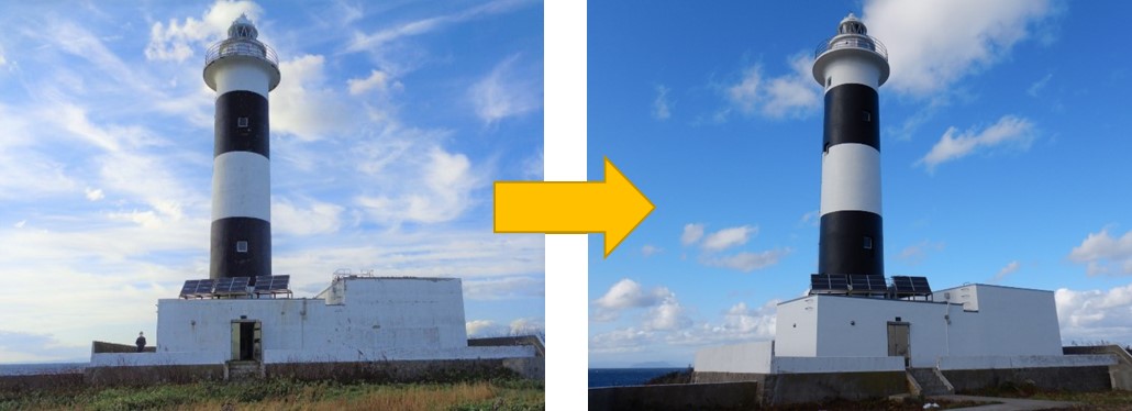 厳しい自然環境に建設されている大間埼灯台は、経年により老朽化が進んでいたところ、令和3年9月29日に外壁や防水等の改修工事が完了しました。初点灯からちょうど100年を迎えた令和3年11月1日には、美しい姿で節目の日を迎えることができました。なお、今般の灯塔改修工事は、2006(平成18)年以来、約15年ぶりの大規模改修となりました。