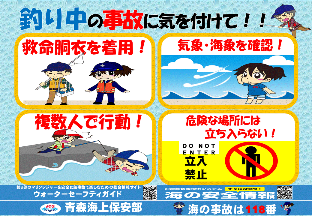 青森県内の釣具店に依頼し、店内放送で来店した方に事故防止を呼びかけていただくようお願いしました。
