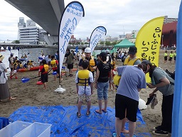 「あおもり駅前ビーチ(通称:A-BEACH)で開催されたシーカヤックの体験会において、参加された皆様へ救命胴衣の正しい着用の方法など、マリンレジャーの安全について呼びかけをさせていただきました!