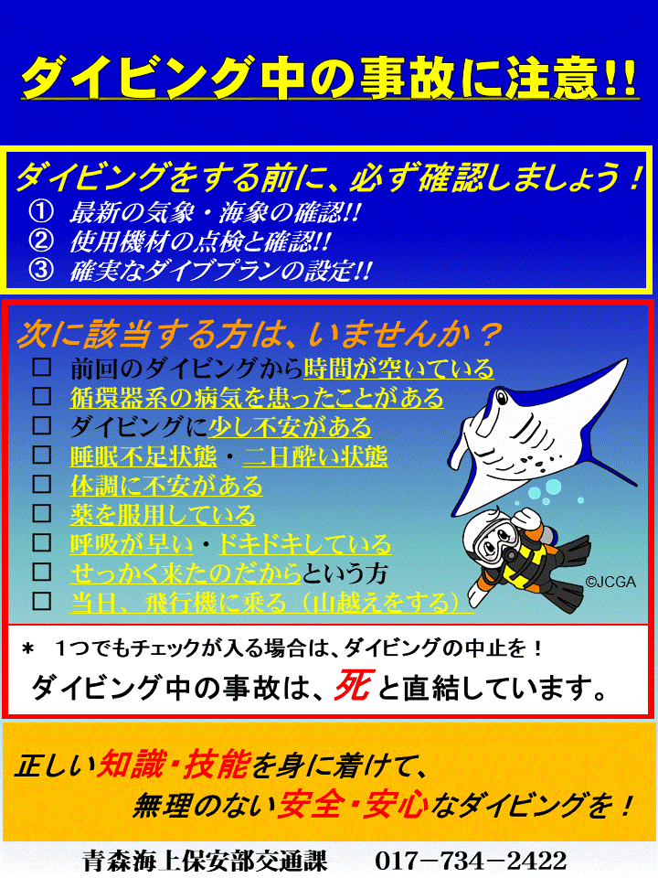 【 令和5年6月22日(木) 潜水中の事故が多発、ダイビングショップへ安全の呼びかけ!! 】
