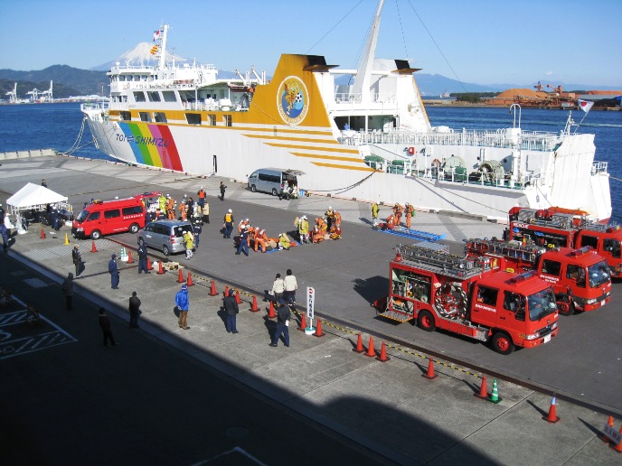 これは、清水港に売却間近の大型フェリーが係留中であることを利用して実施したもので、訓練参加者には、