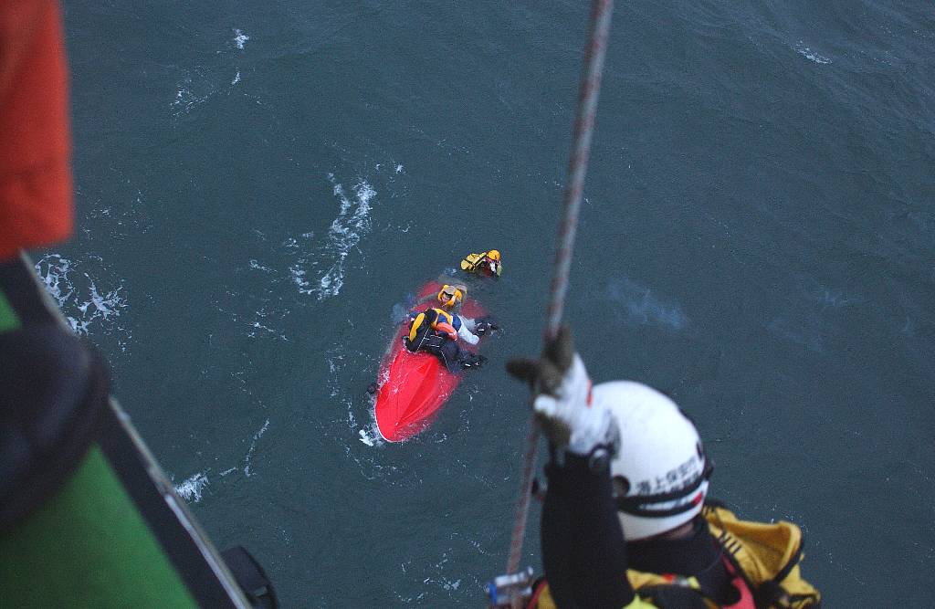 乗組員3名は、ライフジャケットを着け、転覆したボートに掴まり、救助を待っていましたが、6時19分に特殊救難隊を乗せたヘリコプターに救助されました。