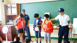 若年層に対する海洋教育の一環として、「海の安全教室」を開催し、救急救命講習、環境教室、救命胴衣の着用講習、巡視艇体験乗船等を行っています。