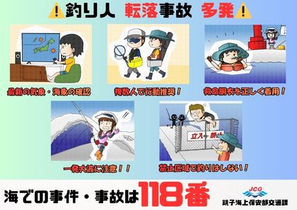この度銚子海上保安部では、海での事故を防止し、安全に釣りを楽しんでいただくための海の安全啓発リーフレットを作成しました。ぜひご一読いただき、安全意識の向上にお役立てください。