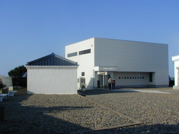 左が休憩所「あずま屋」で右が資料展示館です。中に入ってみる?