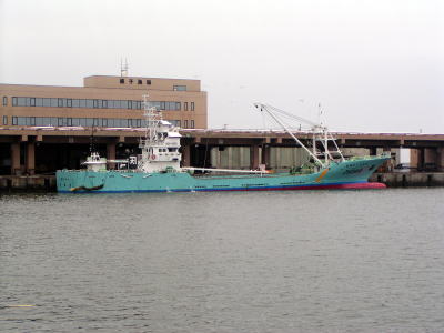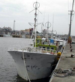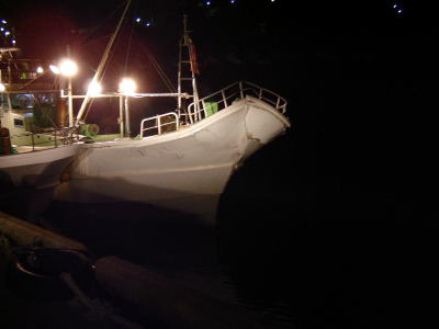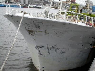 | マグロ延縄漁船の船首部損傷状況 | 底引き漁船の右舷側損傷状況 |