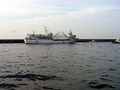| 平成20年6月、千葉県銚子市犬吠埼沖東方約17海里の海上で、マグロ延縄漁船(19トン)と底引き漁船(14トン)が衝突しました。この衝突によるけが人、油の流出はありませんでしたが、底引き漁船の右舷外板と延縄漁船の船首外板が損傷しました。 衝突時、底引き漁船は操業中で、マグロ延縄漁船は沖合漁場向け航行中でした。両船とも、常時適切な見張りを行うことなく航行し、衝突するまで互いに相手の存在を確認していませんでした。 見張りは船の運航の基本事項です!!! |