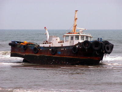 | 平成20年4月27日、千葉県山武市木戸川浜から約200m沖の浅瀬に、作業船(19トン)が乗揚げました。乗組員は無事でした。 この作業船は、銚子漁港から東京湾へ回航中、千葉県いすみ市の太東漁港に寄港する予定でしたが、太東漁港付近の明かりと、乗揚げ現場付近の明かりを見間違え、入港準備にかかったところ、クラッチが故障し徐々に陸岸に接近し乗揚げたものです。 カンだけに頼らず、航路標識やGPSで自船の位置を確認しましょう! |