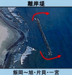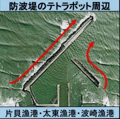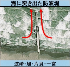 | 注意: 海岸の人工構造物付近には 強い流れが発生しています!! |