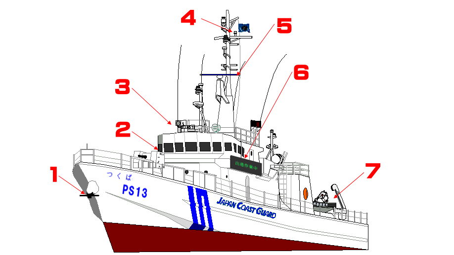 PM型以上の巡視船の場合、錨は両舷に1つずつ設置されていますが、多くのPS型巡視船には、船首に1つ設置されています。