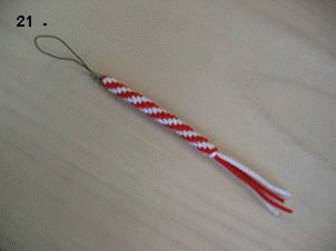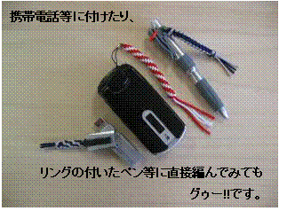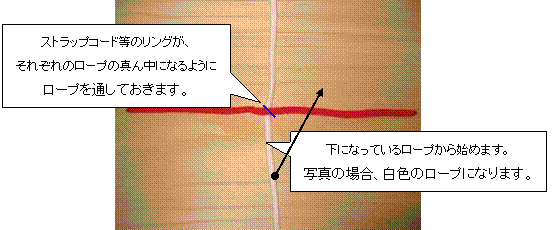 (このストラップは、「叶結び」を応用して作ります。)