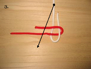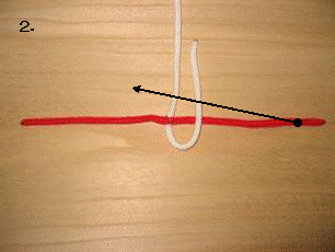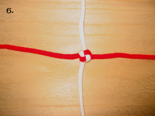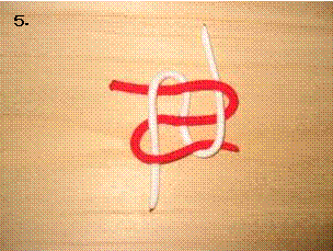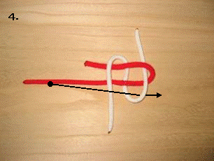 左のロープを右に折り曲げます。この時、最初に折り曲げたロープの下をくぐらせます。