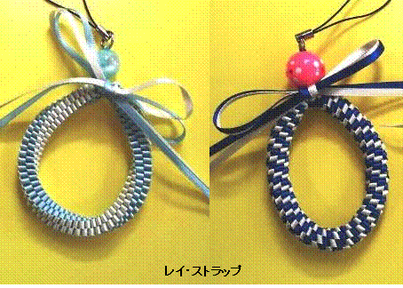 少し大変ですが、リボンで作ると写真のようなレイ・ストラップもできます!!