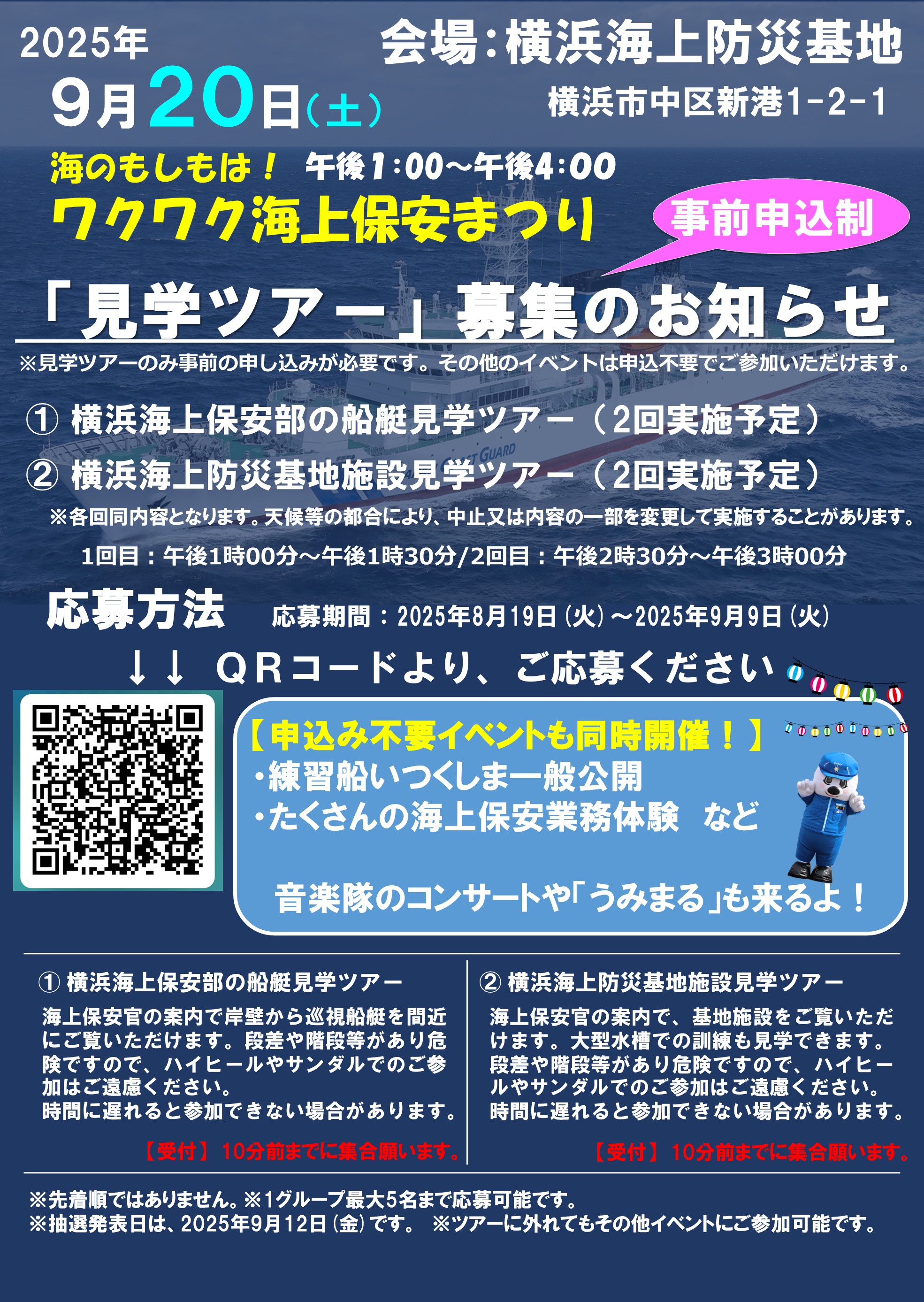 さらに、横浜防災基地見学ツアー(抽選申込)もあります。