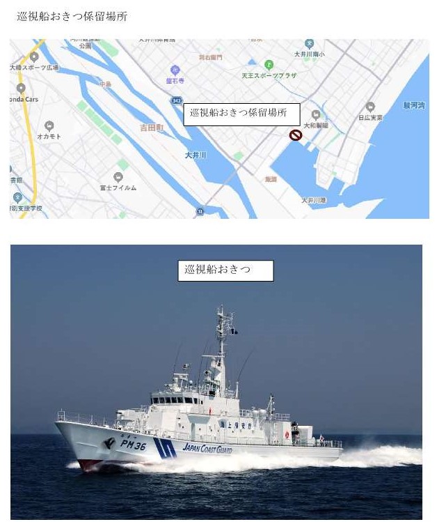 巡視船は、急な階段、段差、突起物などがあるため、歩きやすく滑りにくい「平底の靴」をお勧めいたします。