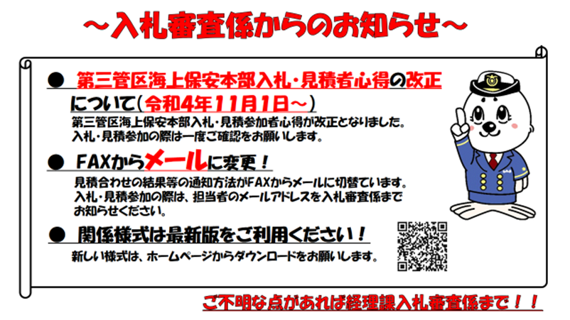 「第三管区海上保安本部 入札・見積者心得」の改正について