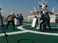 海上保安庁では、海上におけるテロの未然防止及び海上における公共の安全確保と秩序維持に万全を期すため、沿岸部にある重要施設等への警備を実施するほか、テロ関連情報の収集体制の強化や、警察・入管・税関・港湾管理者などの関係機関や港湾の民間事業者と連携して、水際における間隙のない体制の構築・強化に努めます。