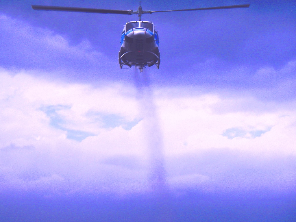 | 「油処理剤空中散布装置」 巡視船やしま搭載機ベル212型ヘリコプター |