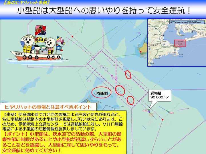 うみまる 「海のヒヤリハットっていうのはさっきみたいな危険だなって思うような状況の事例が第四管区海上保安本部のホームページにたくさん載っていて、覚えていたんだ!!」
