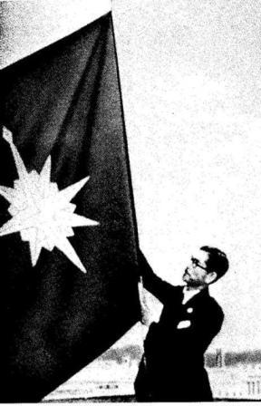 昭和23年5月1日、海上保安庁は、運輸大臣の管理する外局(※)として設置され、同月12日、初代長官大久保武雄氏の手により、庁舎屋上に初めて庁旗が掲揚されました。(※現在は国土交通省の外局となっています。)