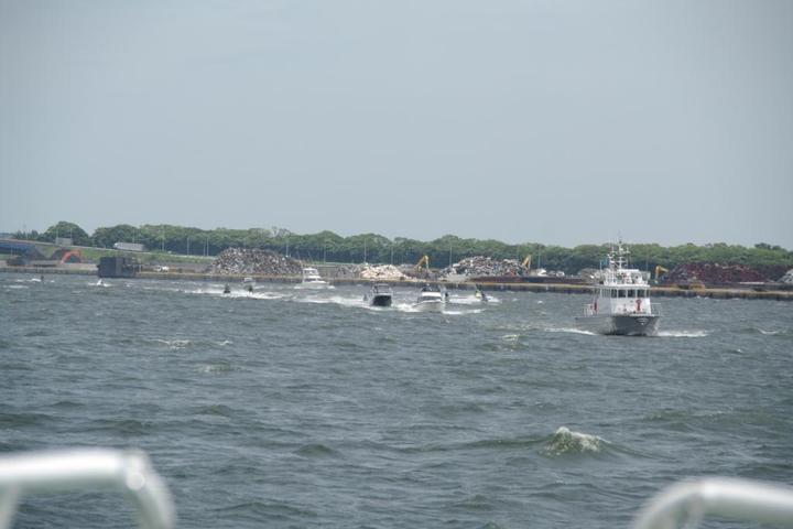 任命式のあと、「巡視艇1日船長」が乗船した巡視艇ひめかぜを先頭に、「安全パトロール艇一日船長」が乗船したプレジャーボート等16隻と巡視艇きぬかぜによる海上パレードが行われ、「一日三河港長」が巡視艇あゆづきに乗船してパレードを見守りました。