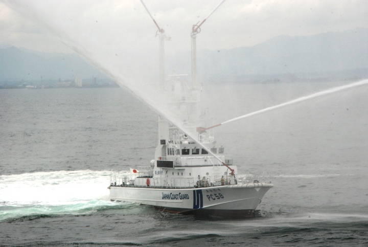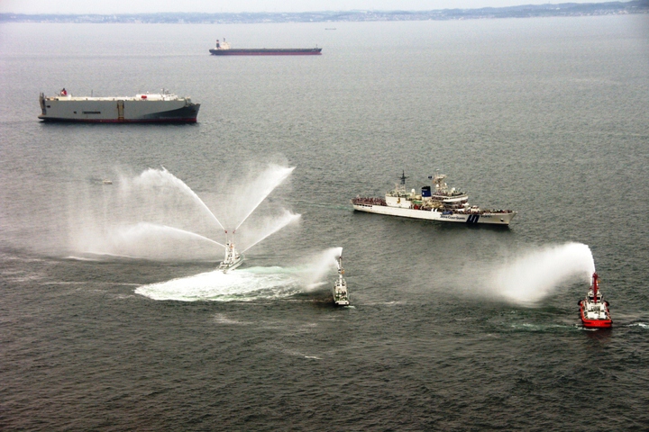 3隻による船舶火災の消火を想定した放水展示訓練です。