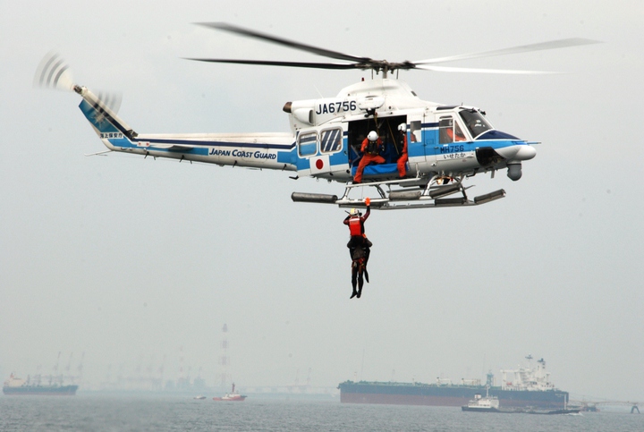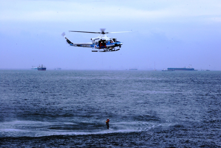 中部空港海上保安航空基地所属ヘリ「MH756 いせたか」及び同基地所属巡視艇「いせゆき」潜水士による漂流者救助訓練です。