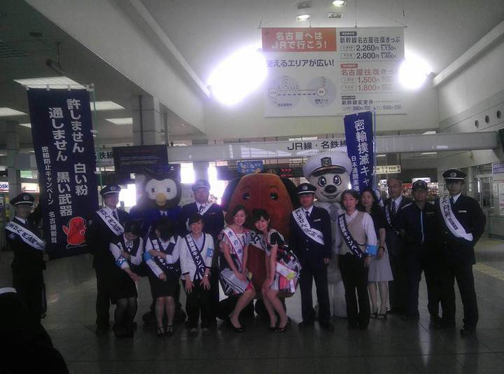 違法薬物や銃器等の犯罪をなくすため、名古屋税関、愛知県警察と合同で「密輸・密航水際対策強化期間」街頭キャンペーンを実施し、街ゆく人に薬物の乱用防止及び密輸撲滅等の呼びかけを行いました。