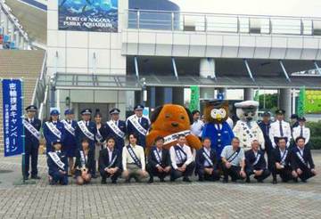 名古屋税関から「カスタム君」、愛知県警から「コノハけいぶ」、当庁からは「うみまる」のマスコットキャラクター達も応援に駆けつけました。