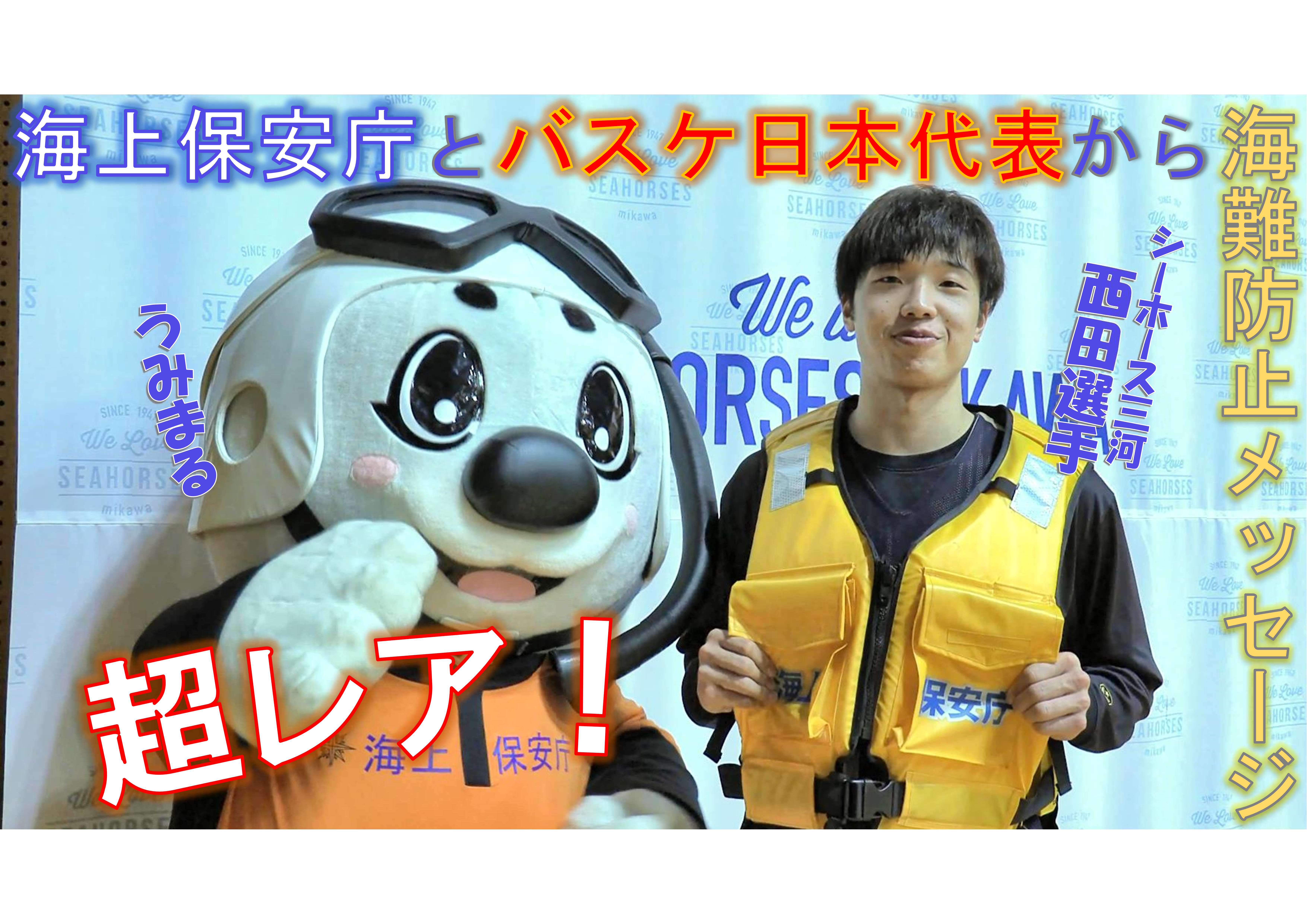 衣浦海上保安署では、バスケットボール日本代表の西田優大選手(シーホース三河所属)の協力で、 安全啓発メッセージを作成し、YouTubeにアップしました! うみまるやシーホースくんも登場します!最後まで是非ご覧ください!